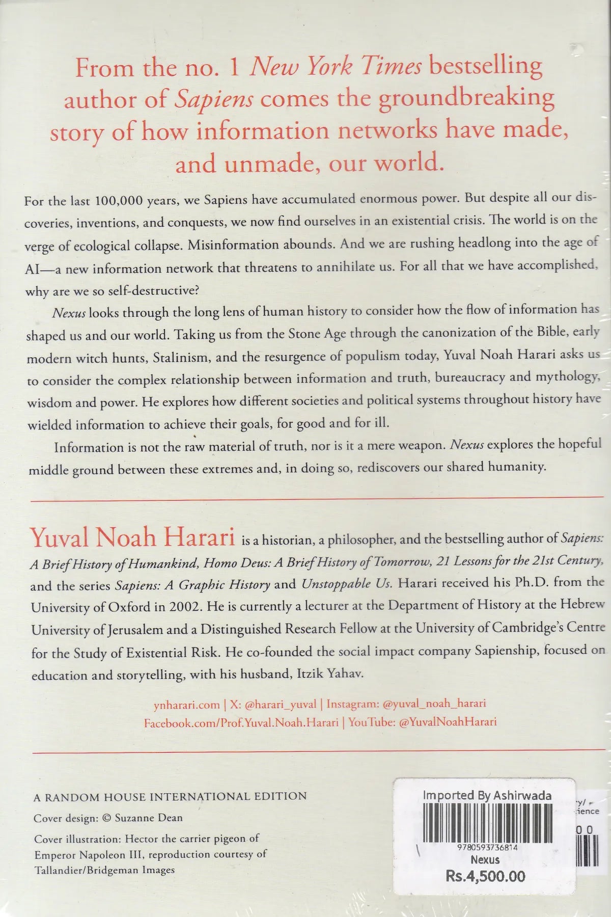 For the last 100,000 years, we Sapiens have accumulated enormous power. But despite all our dis-coveries, inventions, and conquests, we now find ourselves in an existential crisis. The world is on the verge of ecological collapse. Misinformation abounds. And we are rushing headlong into the age of Al-a new information network that threatens to annihilate us. For all that we have accomplished. why are we so self-destructive?